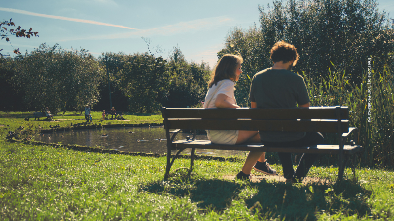 Paar, sich gegenüber sitzend: by Karola G from Pexels@canva