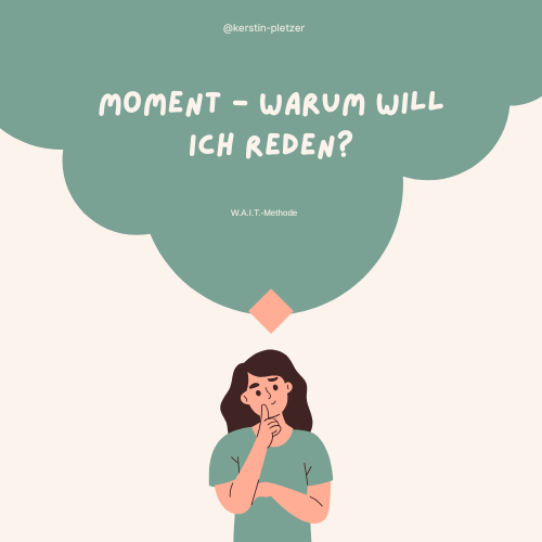 Die W.A.I.T.-Methode umfasst, innezuhalten und sich kurz zu fragen: Why Am I Talking – Warum will ich jetzt gerade reden?